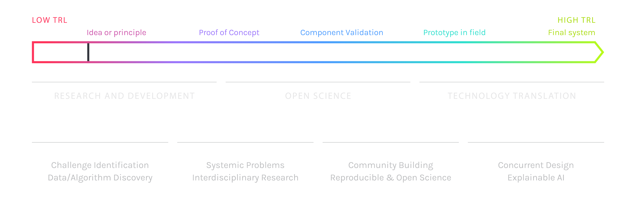 Our work is driven by the scientific method and guided by NASA’s technology readiness levels (TRLs). During the development cycle we conduct regular reviews with experts and potential end-users. This ensures the research stays on-target and delivers maximum impact, but also means that our partners gain a deep understanding of what is created.