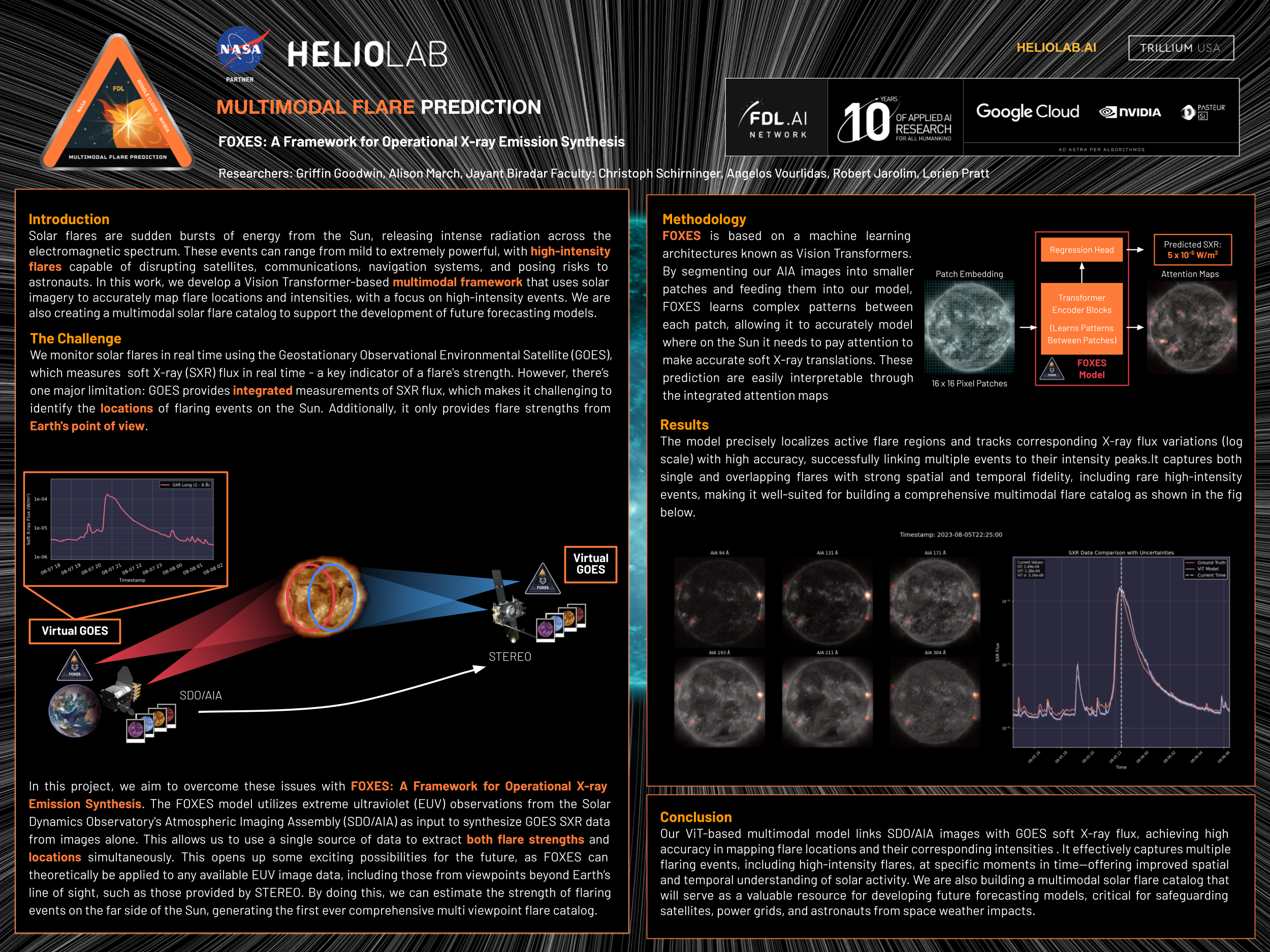 To address these issues, our team, as part of FDL’s Heliolab, developed FOXES: A Framework for Operational X-ray Emission Synthesis. Our goal was to answer a deceptively simple question: “Is it possible to determine a flare’s soft X-ray flux from extreme ultraviolet (EUV) images alone?”