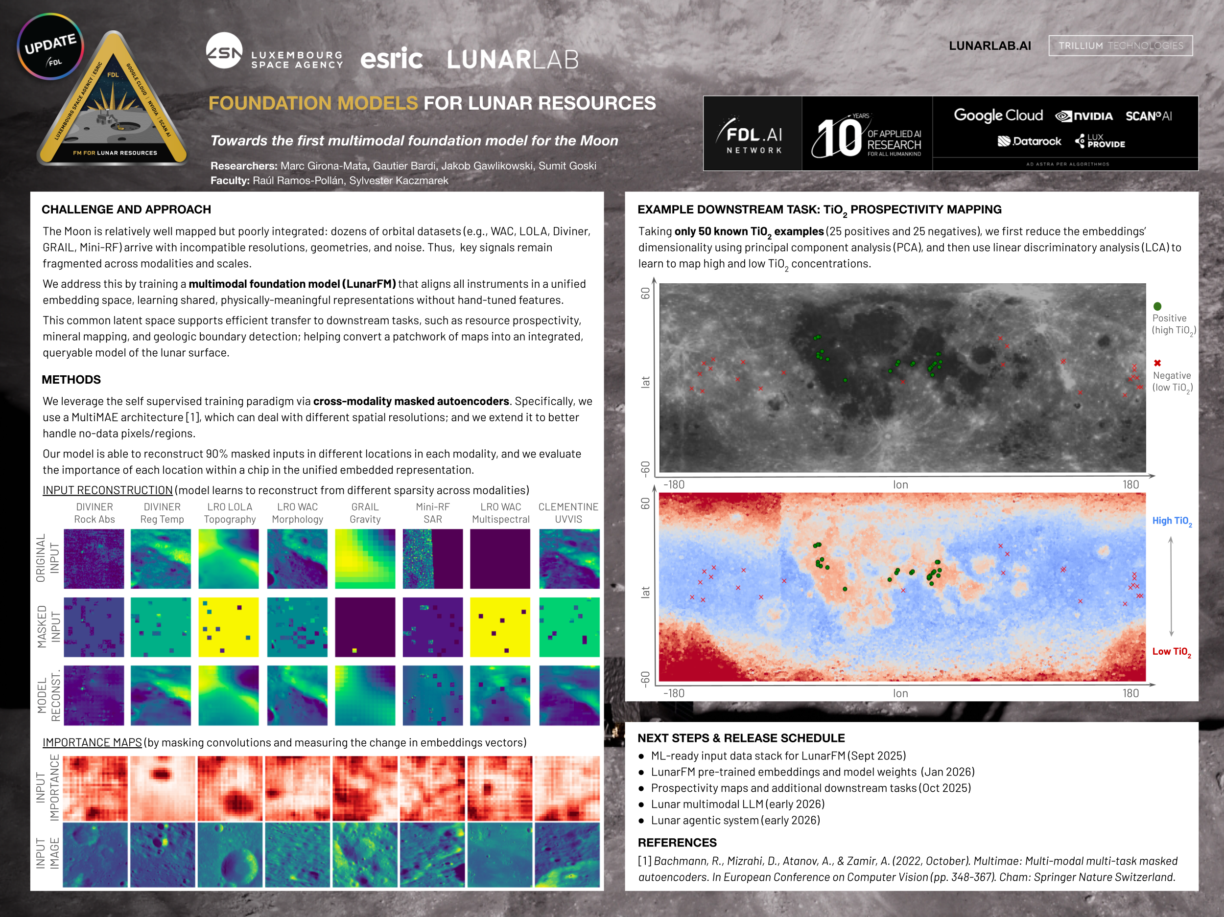 At Lunarlab this summer, researchers built something groundbreaking: LunarFM, a multimodal lunar foundation model that learns directly from decades of observations and fuses them into a single representation of the Moon.